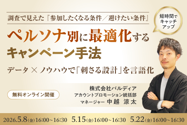 本セミナーでは、調査データから導いたペルソナをもとに、ペルソナ別に相性の良いキャンペーン手法と設計ポイントを解説します。