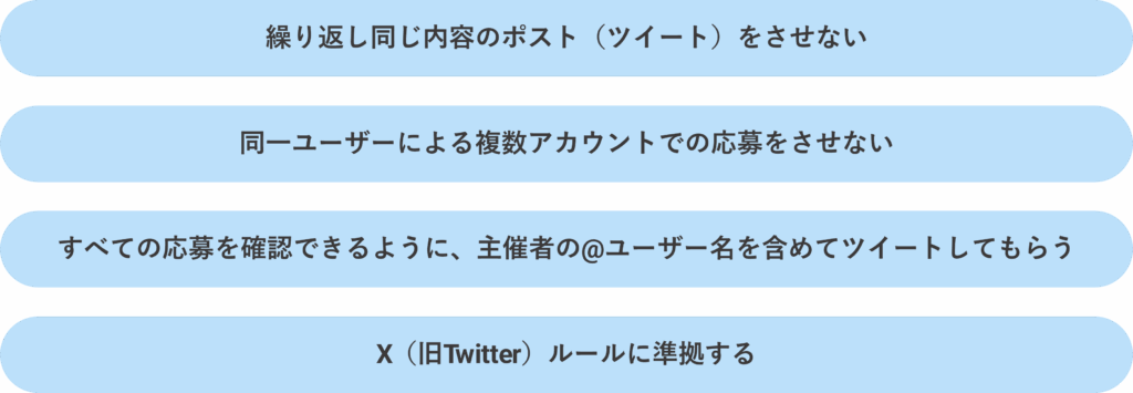 不正な当選確率アップを防ぐために規約が存在し、Xは複数アカウントを使った応募を不正行為とみなします。