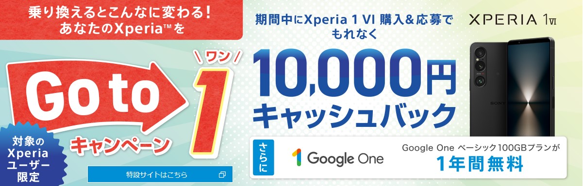 | 景品 | 10,000円キャッシュバック&Google Oneベーシック100GBプランの1年間無料:全員 |