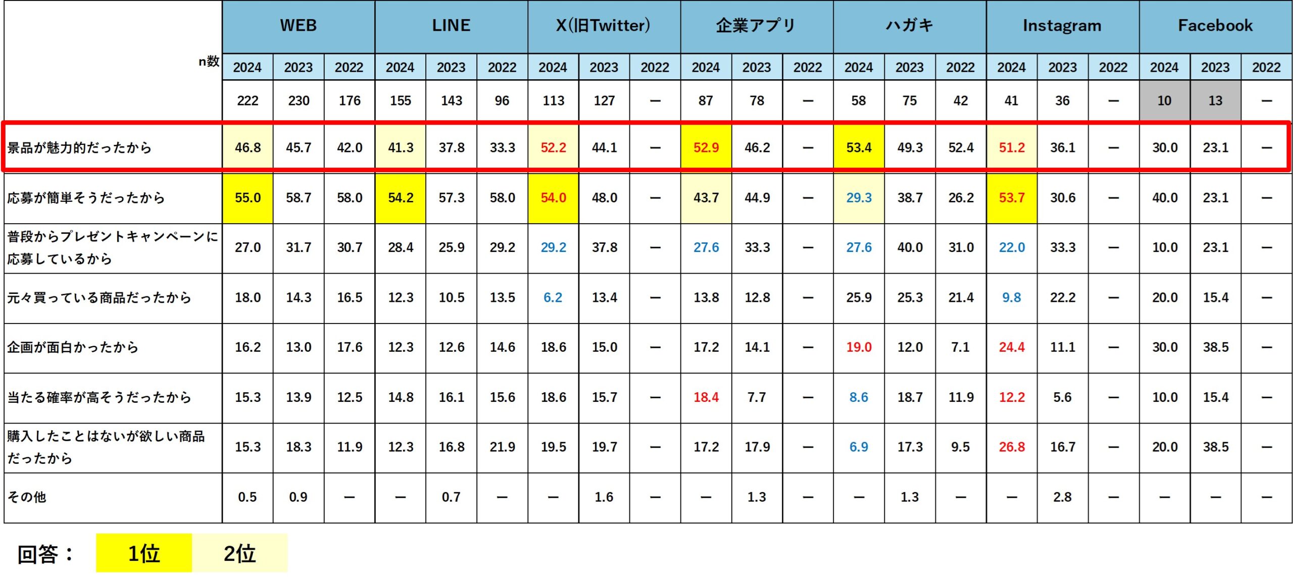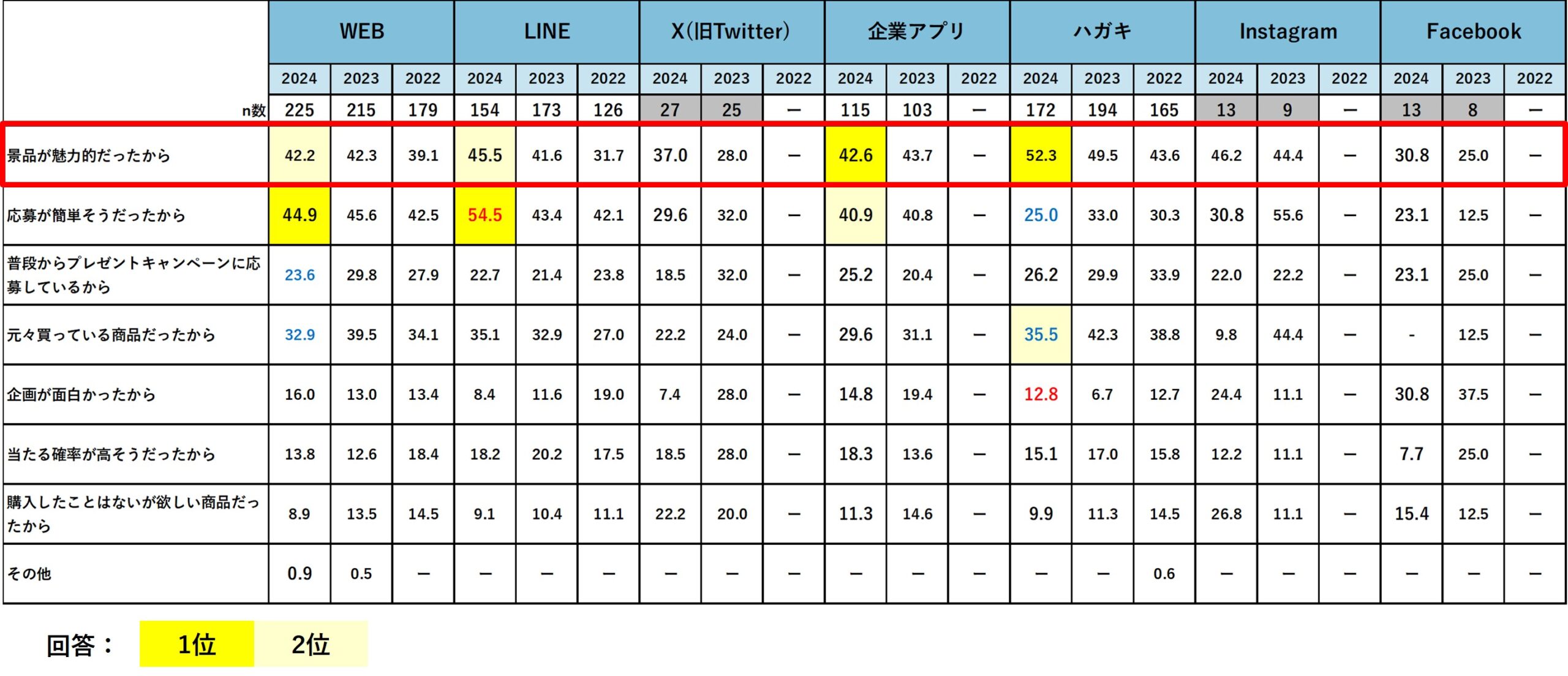 コラボ企画ならではの限定グッズやセット商品などは話題になりやすく、応募のきっかけにもなりえます。弊社が実施した「キャンペーンに関する消費者意識と実態調査」でも、「キャンペーンに応募した理由」の1位に景品の魅力度がランクインしております。