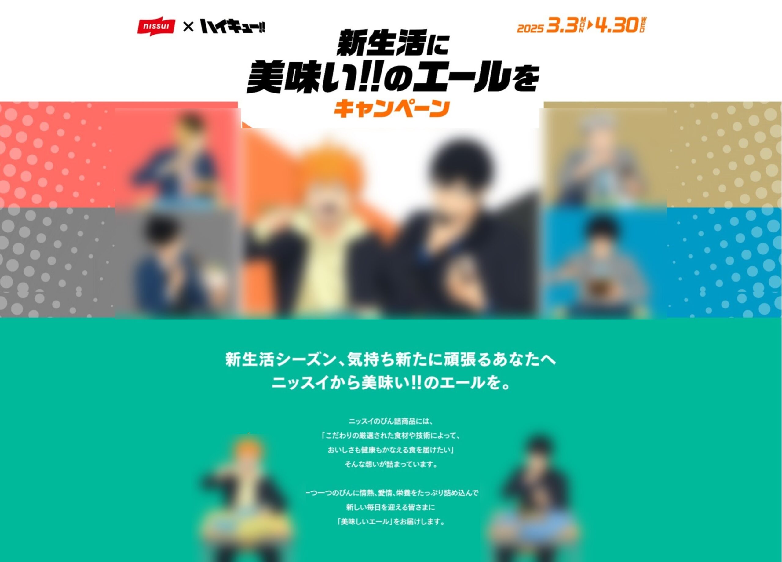 新生活を迎えるタイミングに合わせて実施された「ハイキュー!!」とのコラボキャンペーンです。対象商品を購入した金額に応じてお好きなコースを選択できるレシート応募キャンペーンです。応募ハードルが低い400円以上購入のコースにはファン層に喜ばれるオリジナルデザインの商品を、800円以上購入のコースには消費者から人気の高い家電を選定しております。さらに、Wチャンス賞を設定し、総計「819=ハイキュー」名に景品が当たるよう設計されている点もコラボならではのポイントです。