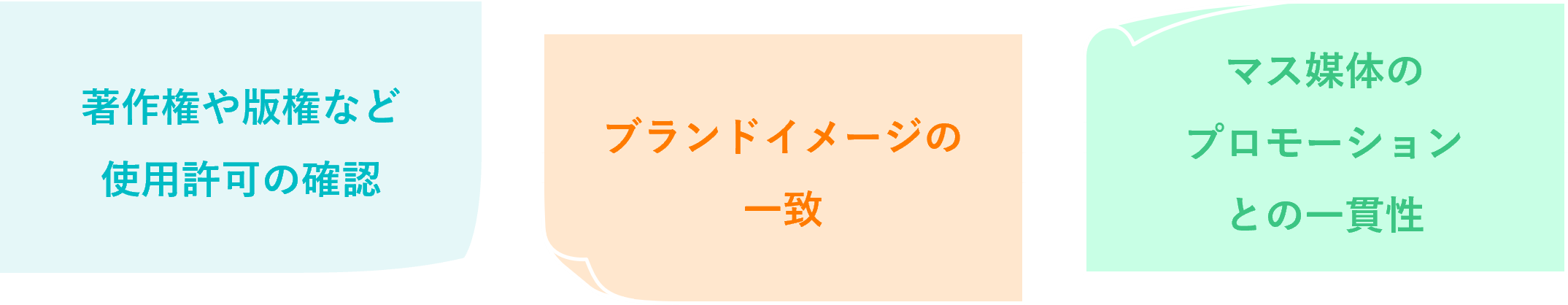 IPとのコラボキャンペーンは大きな話題性と集客力を持つ一方で、実施にあたっては慎重な配慮が求められます。以下の3点はキャンペーンを問題なく実施するために押さえておきたいポイントです。