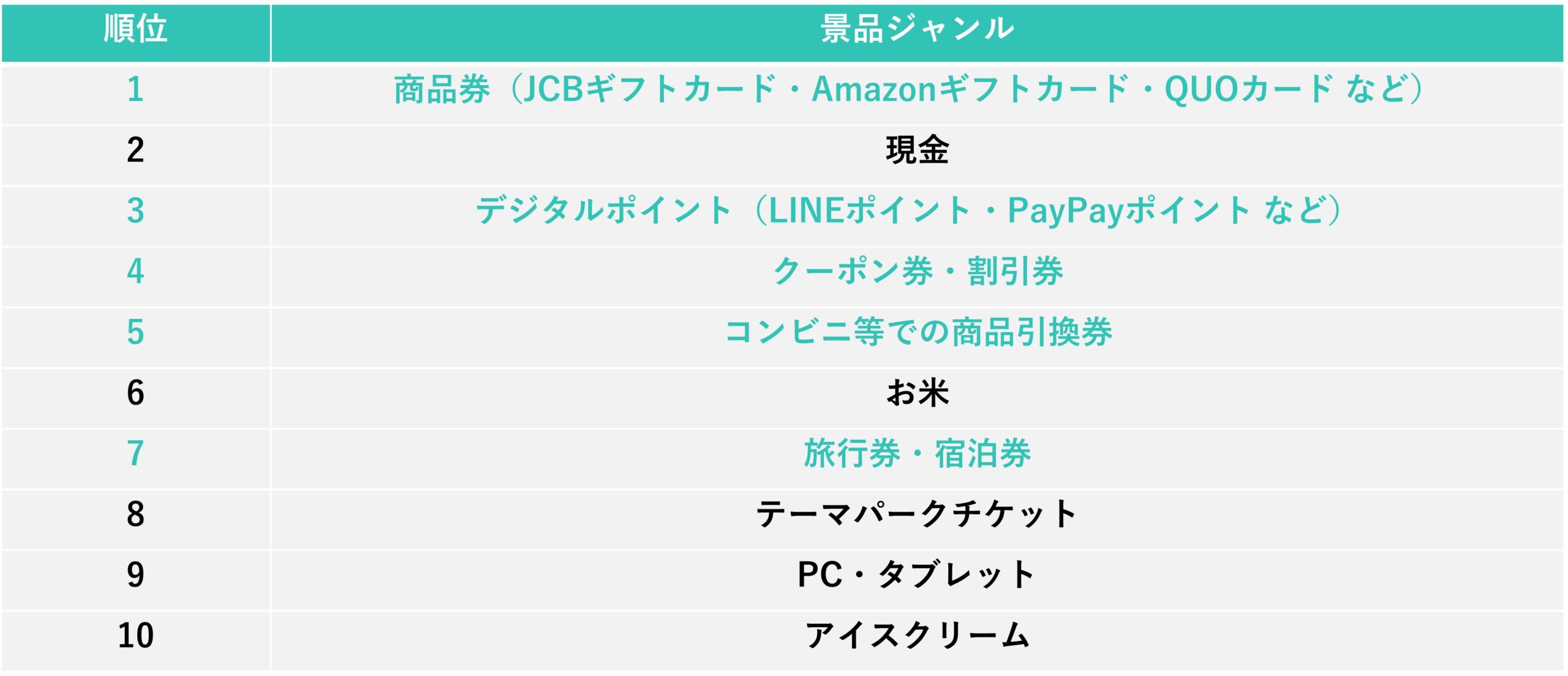 また、キャンペーン景品としてもデジタルインセンティブは需要が高まっています。利用用途が幅広い金券類は、魅力度・採用数ともにランキングの上位を占めており、ターゲットを選ばないジャンルのため、デジタルインセンティブも景品としても魅力度が高いです。