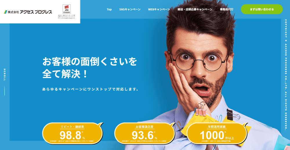 キャンペーン事務局運営のほか、Web制作やデータ処理など関連業務も一括でサポートできる会社です。応募受付から問い合わせ対応、抽選、景品発送まで幅広く対応しており、オンライン施策も含めて柔軟に運営体制を組める点が特徴です。