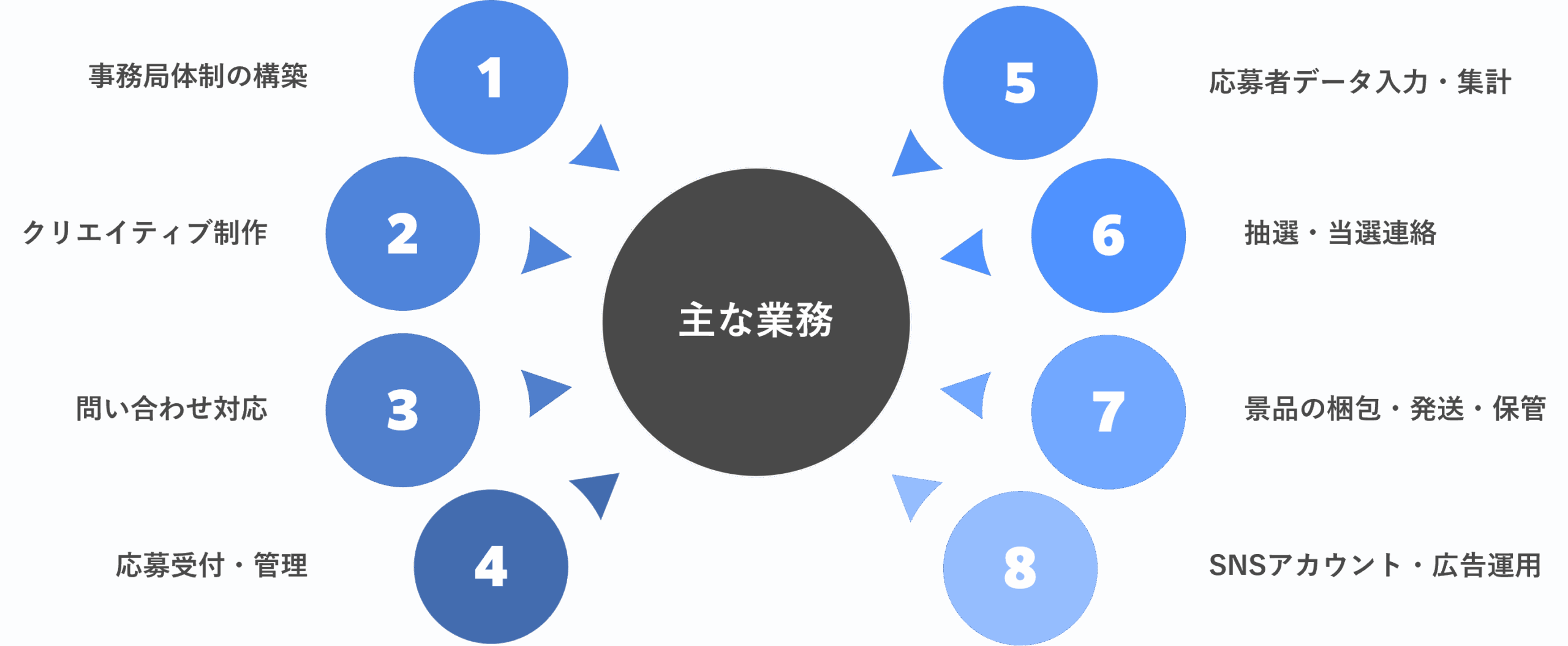 ・応募受付、抽選、発送のみなど、必要な部分だけを切り出して依頼できるため、部分的な外注にも対応可能