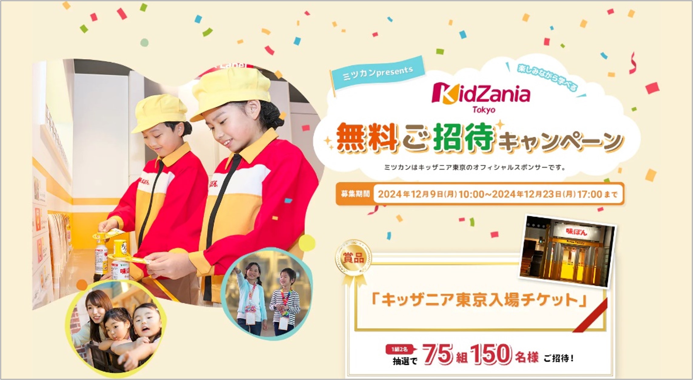 用途の広い金券であれば応募も集めやすいのですが、利用場所や商品を絞った金券は「そのお店を再利用してほしい(店舗送客)」「キャンペーンのテーマを景品で補強したい(世界観作り)」などの意図で採用されることが多くあります。また下記のように、お子様向けの招待券を景品に採用し、実際に商品を購入する親世代に応募を促すような企画もございます。