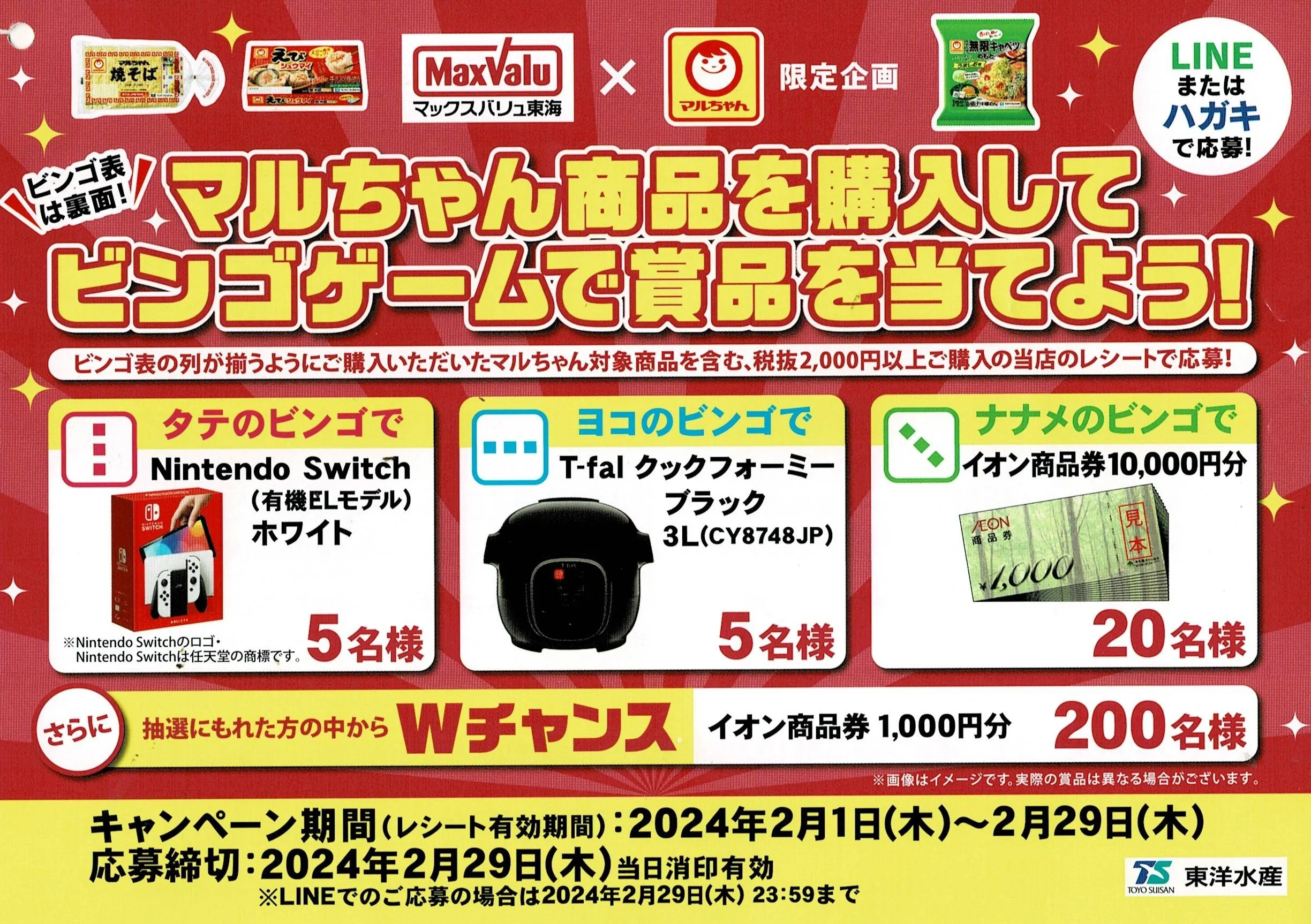 - 東洋水産×マックスバリュ東海|マルちゃん商品を購入してビンゴゲームで賞品を当てよう!